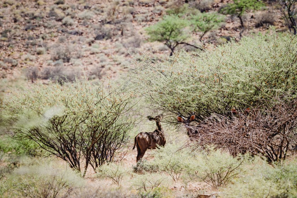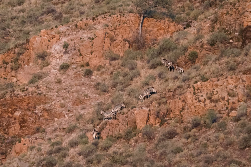 Im Naukluftgebirge kann man Wanderungen in 1.800 Metern Höhe unternehmen. Man läuft von den Gipfeln bis in tiefe Schluchten, in denen man nicht selten ein Wasserauge findet, das sich bei den hitzigen Temperaturen als Abkühlung sehr gut eignet. Neben meinen Lieblingstieren den Pferden, kann man mit Geduld allerlei Wildtiere beobachten, die sich in der Berglandschaft gut zurecht finden. Die schönsten waren für mich die Bergzebras die sich mit ihrem robusten Körperbau und der klaren Musterung deutlich von den Steppenzebras unterscheiden.